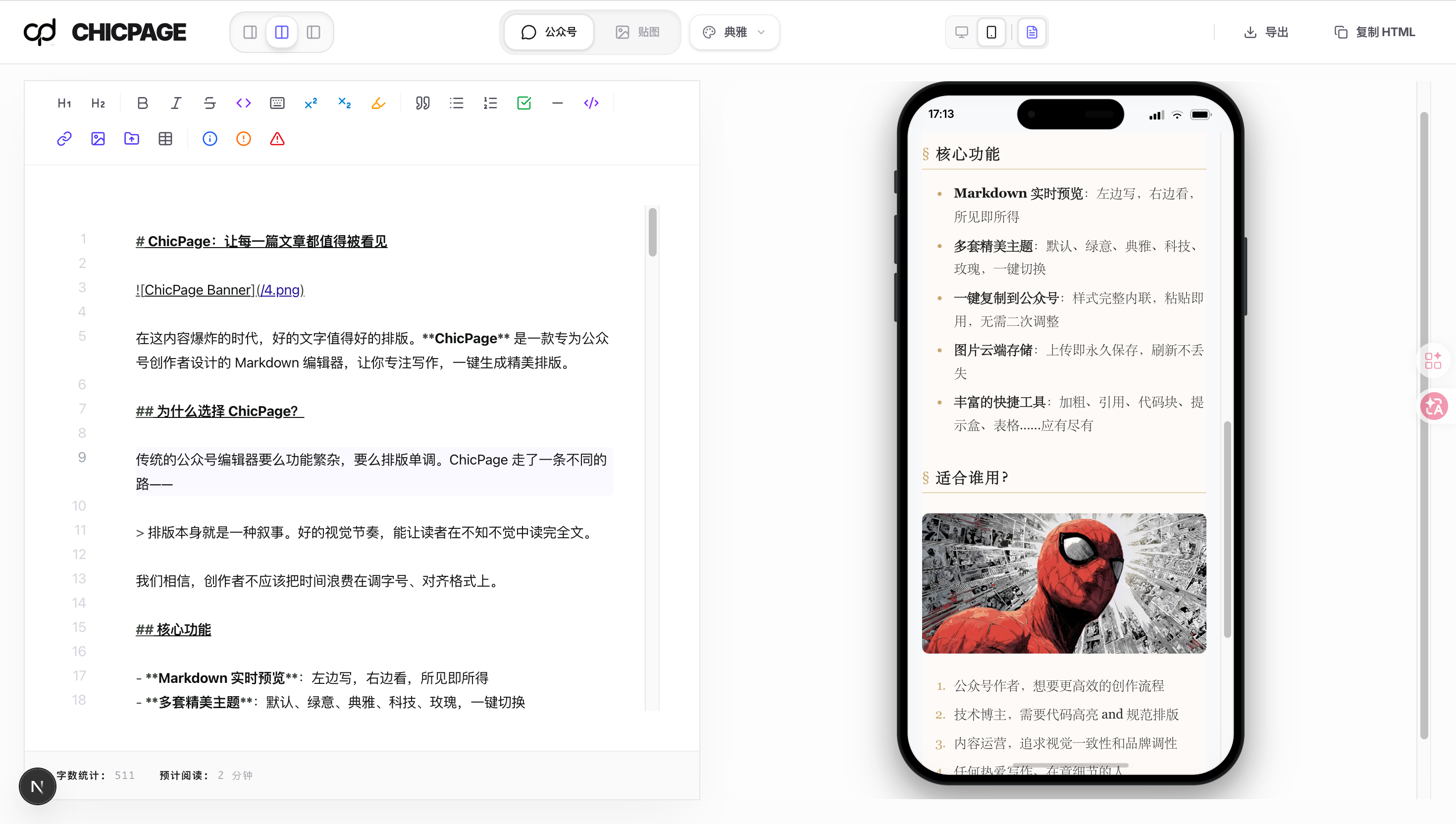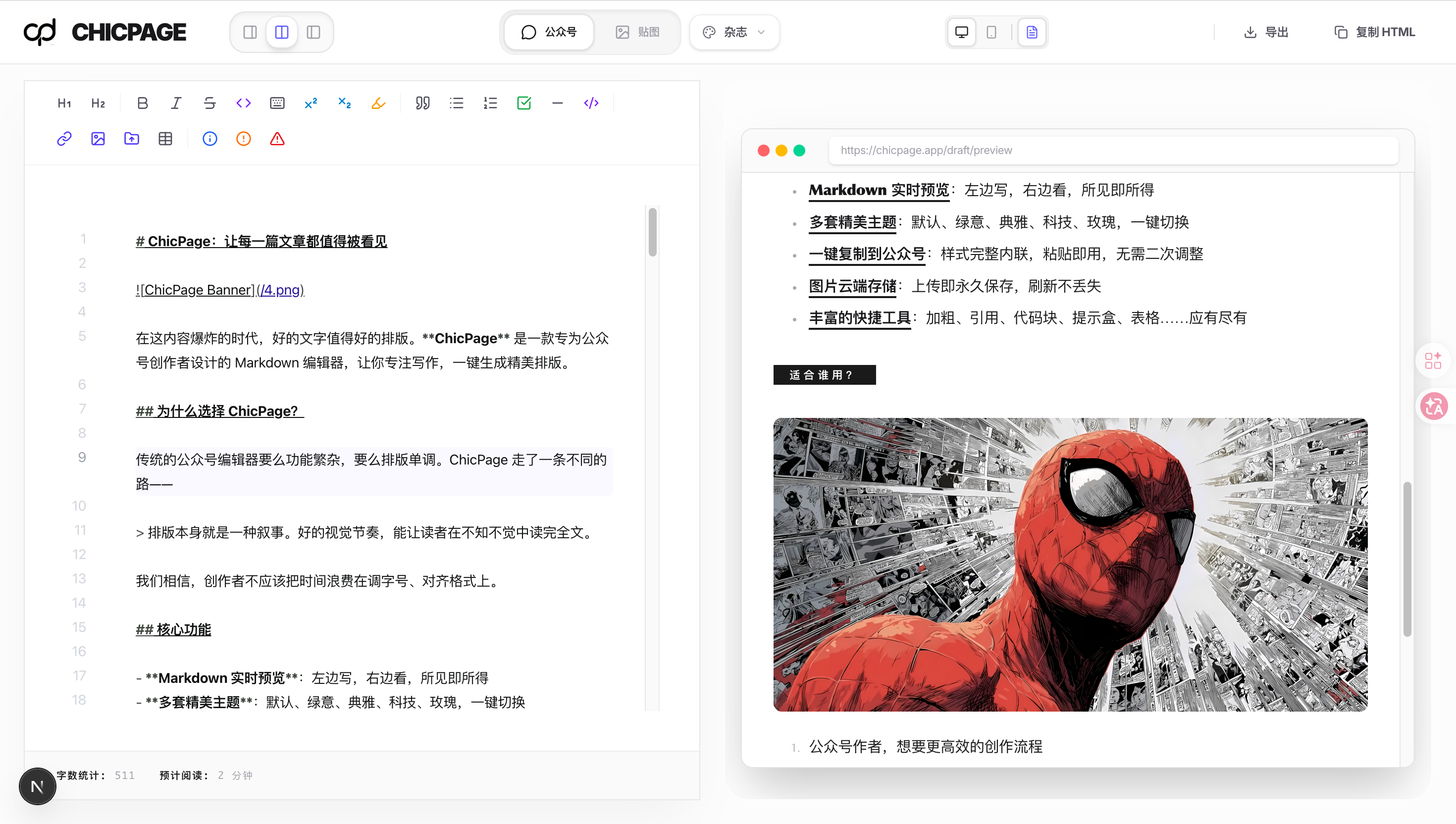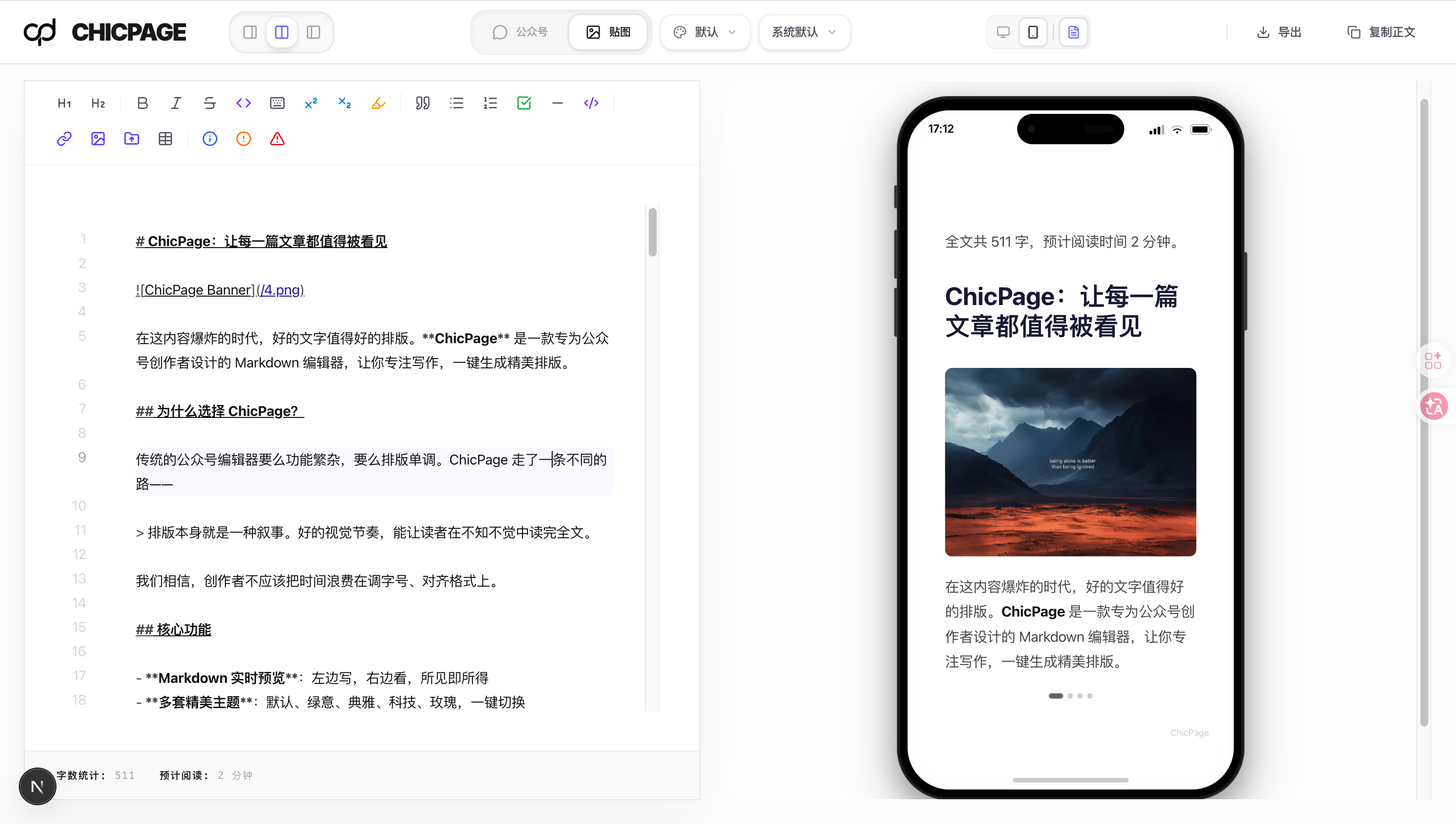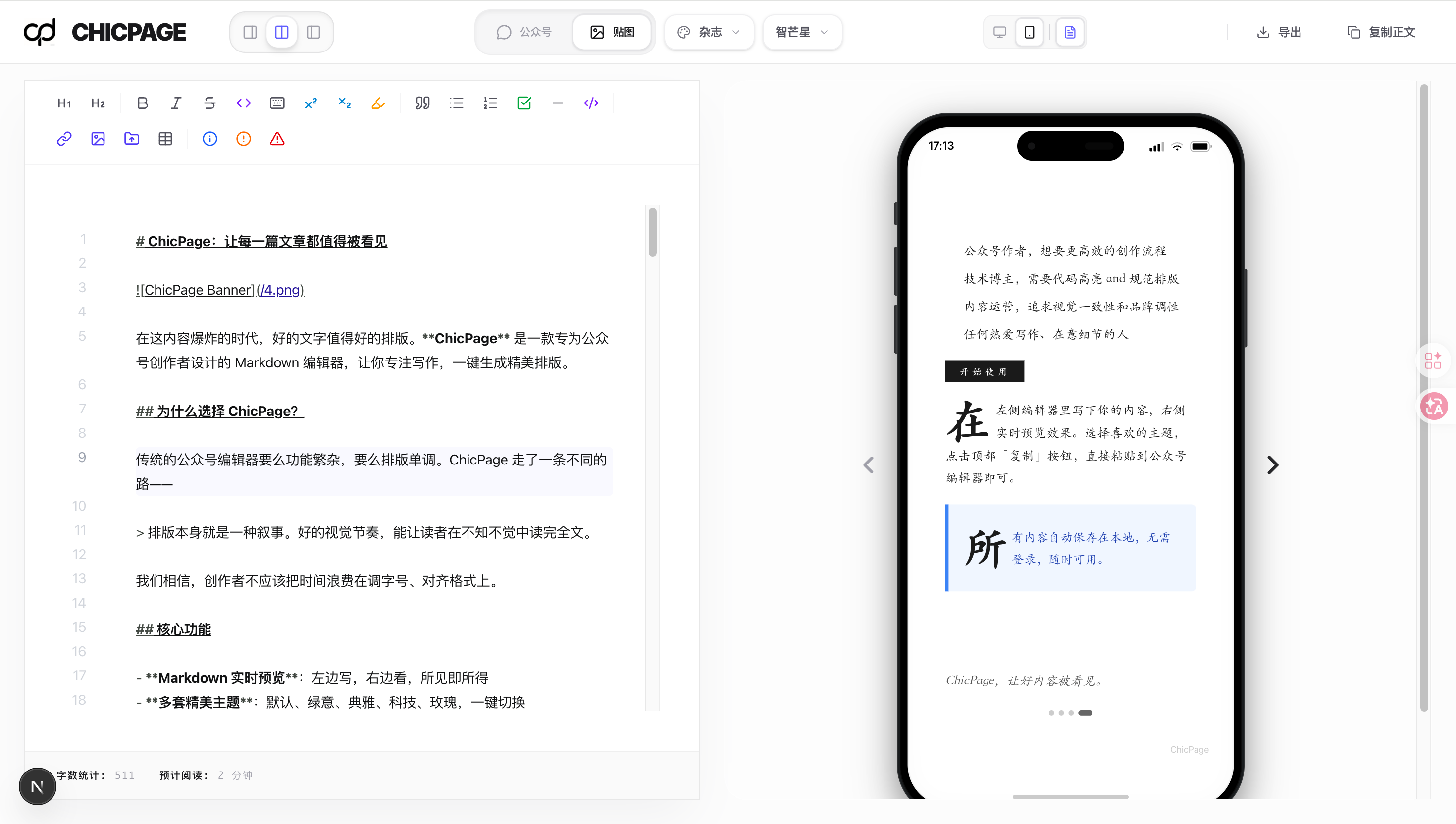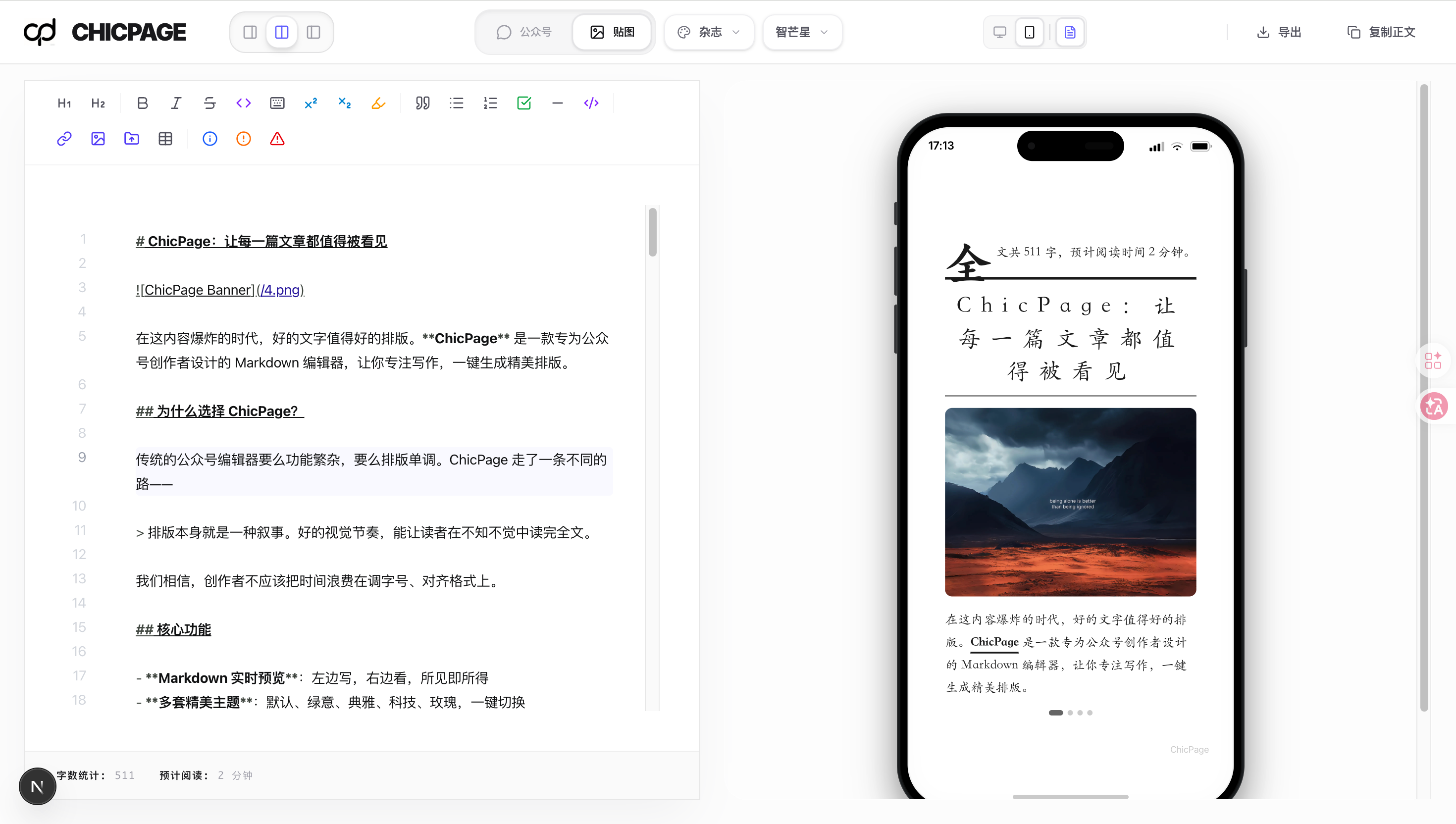 “排版是文字的灵魂。ChicPage 为你的表达提供应有的舞台。”